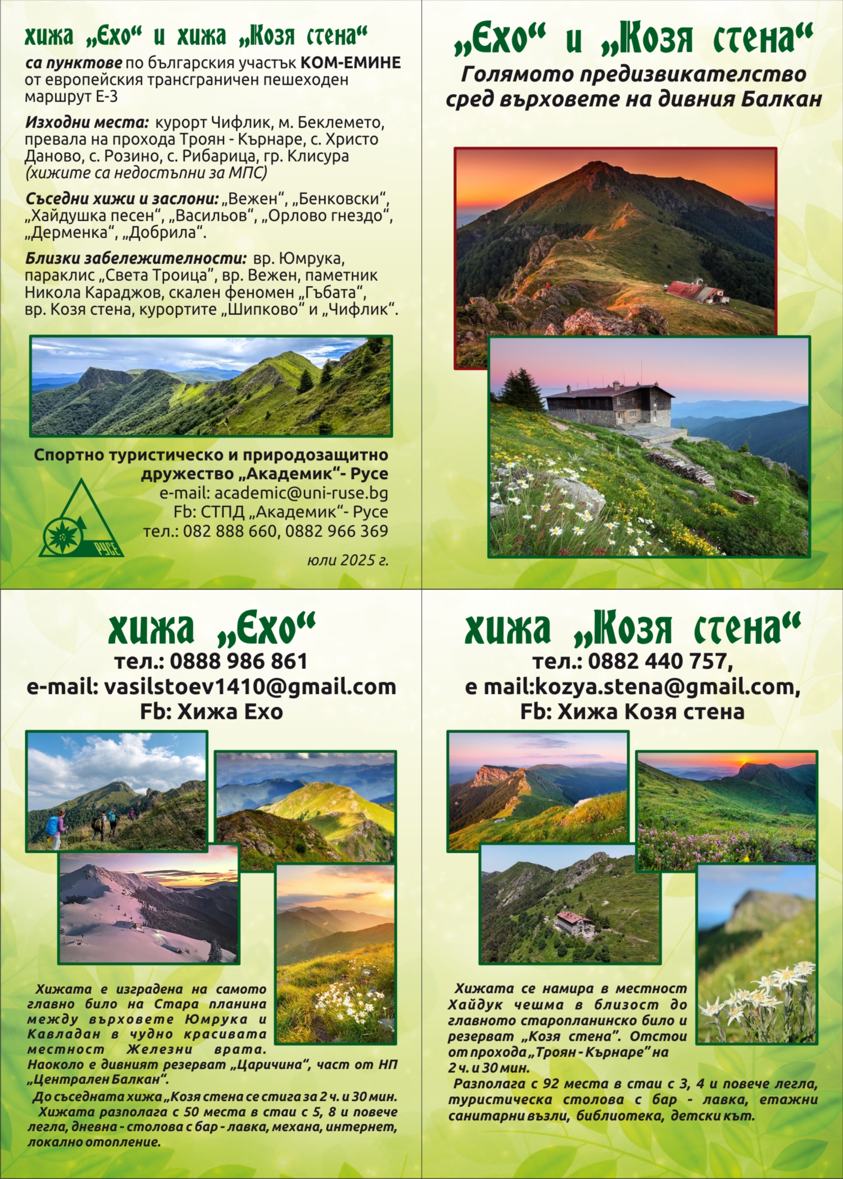 По инициатива на дружествения клуб „Хижно дело и маркировка“, за улеснение на туристите, са номерирани маркировъчните стълбове в отсечките: Превал на Троян- ски проход (№ 1) – Ветровити преслап (№ 77); Каменната порта (№ 249) – х. “Ехо“ (№ 333); х. „Ехо“(№ 1) – вр. Ушите (№ 31).